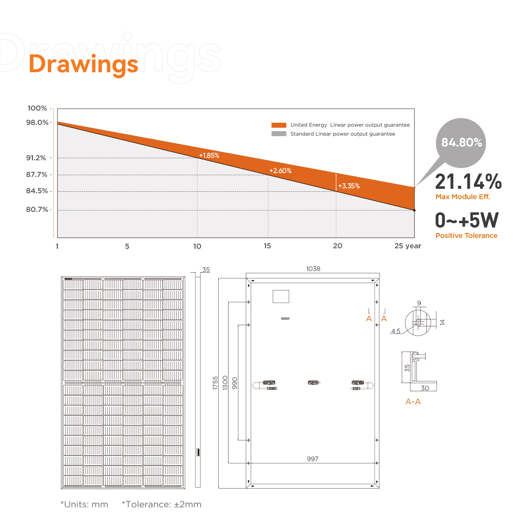 The size of this solar panel is 1755 ×1038 × 35mm.
