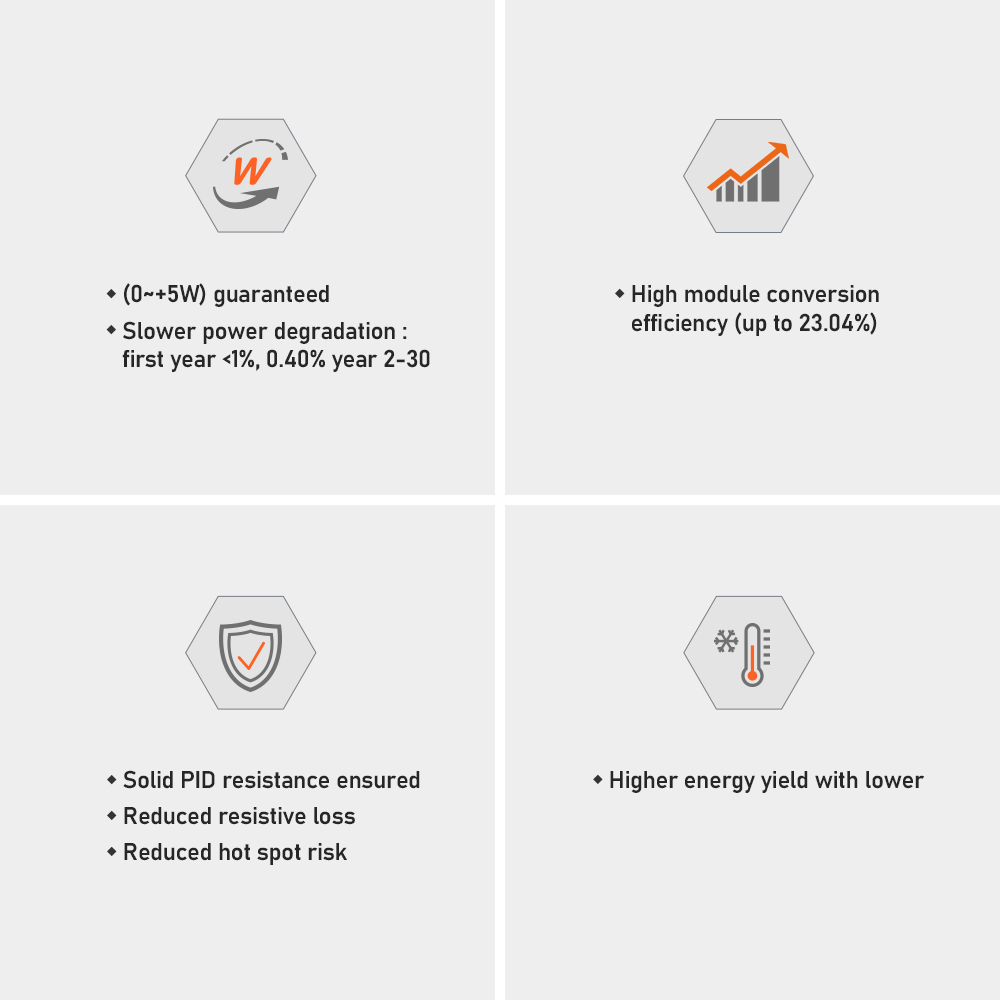 | Module Efficiency(%) | 19.49 | 20.04 | 20.59 | 21.14 | ||||