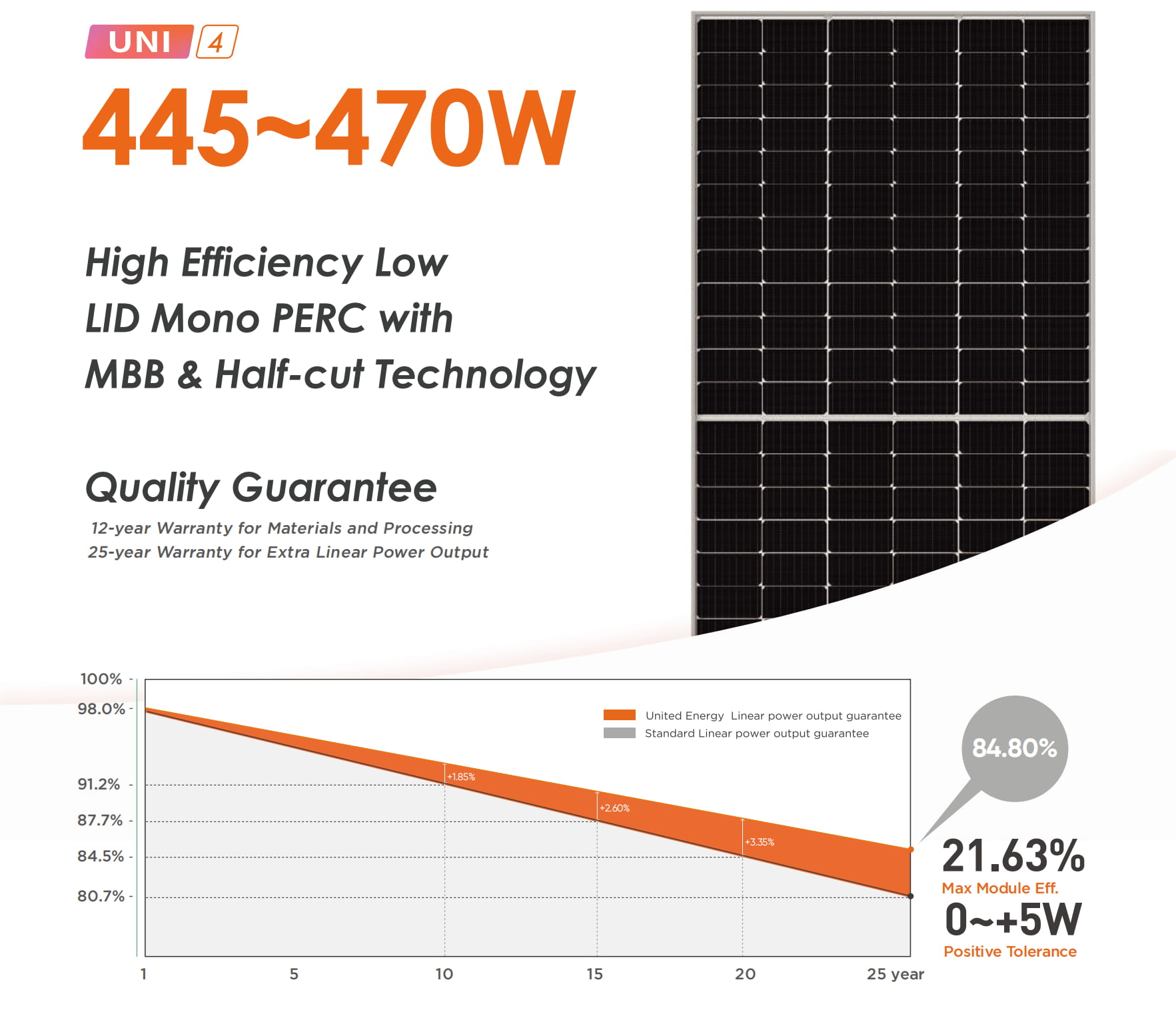 UNI 4 Series 144 Half Cells PV Panel 450W 455W 460W 465Wp 470Watt