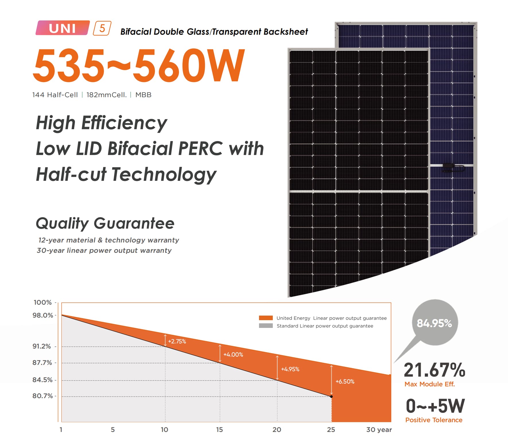 30 Years Warranty Double Glass Bifacial Solar panel 540w 545w 550w 560w