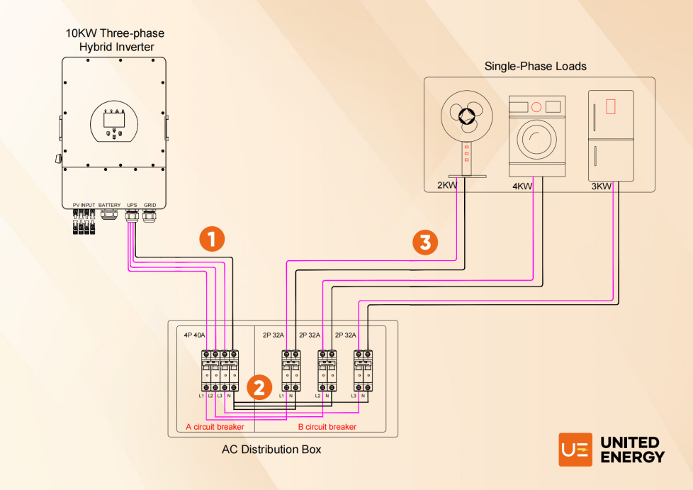 1. Each single-phase load must not exceed 6kW, and the total load must stay within the inverter’s capacity.