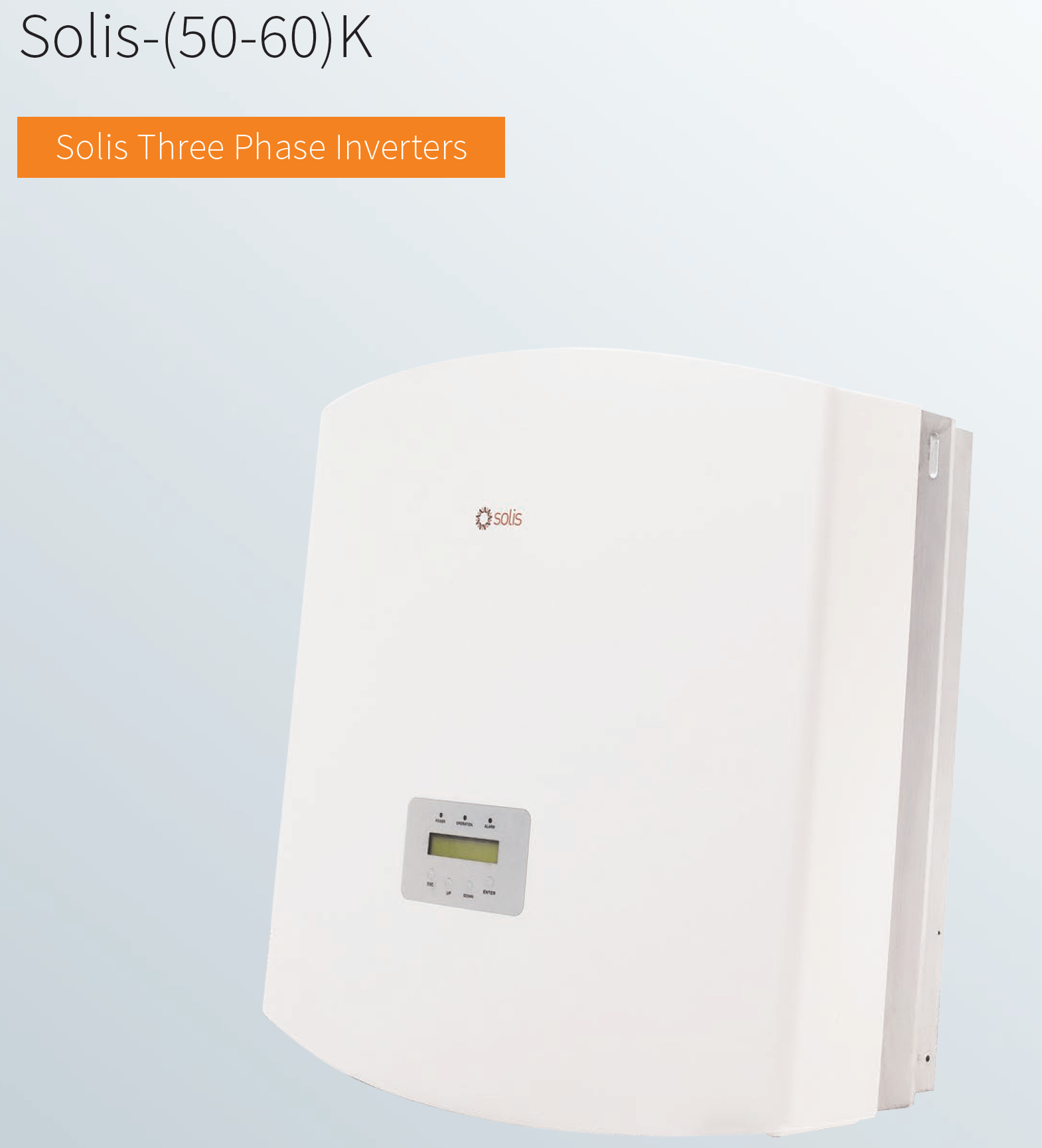 Solis-(50-60)kW three phase series string inverter are suitable for the installation of three-phase input pv system of commercial and industrial PV plants.