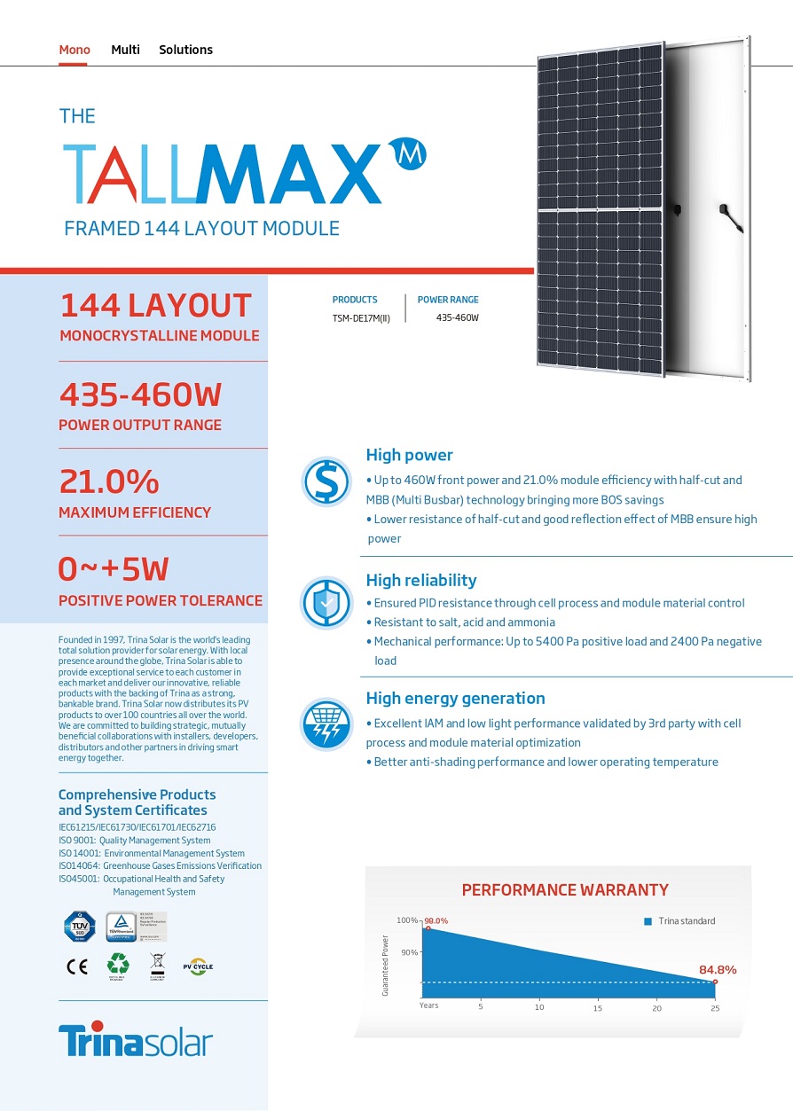 | Module Type | Tall Max 450W | Tall Max 455W | Tall Max 460W |