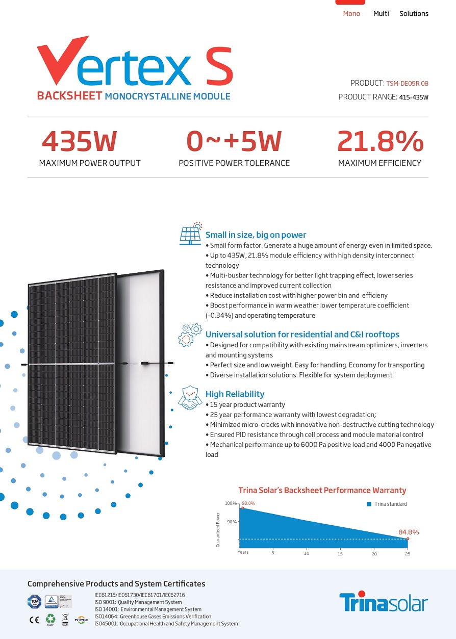 1. Up to 435W, 21.8% module efficiency with high density interconnect technology