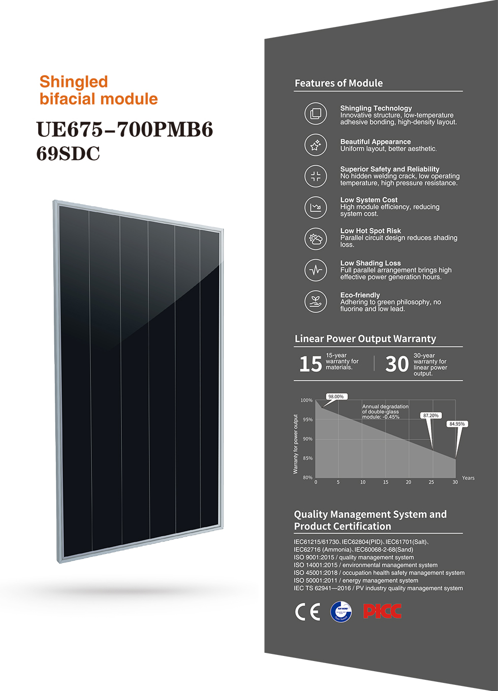 IEC/CE/TUV/CSA/CEC/ULUnited Energy founded in 2009, National high-tech enterprise,focus on solar panel R&D obtained more than 100 patents.